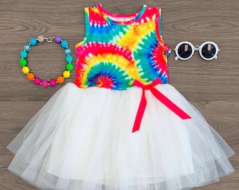 Girls Tie Dye Dress Pink Rainbow Heart Sleeveless Tank Or Etsy