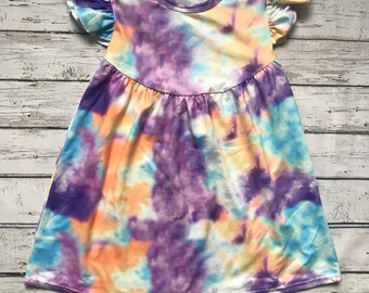 Dress is knee length and includes 34 length sleeves. Feb 14 2022 - Yoga Pants Long Leggings Distressed Tie Dye Stretch Full length Exercise Pant Fold Over Waist Flared leg Tights Gym Pants Workout Pants Note. Girls Tie Dye Dress Short Sleeve Girls Tiered Ruffle Dress Purple Swirl Design Back to School Outfit Eco-friendly Dyeing.